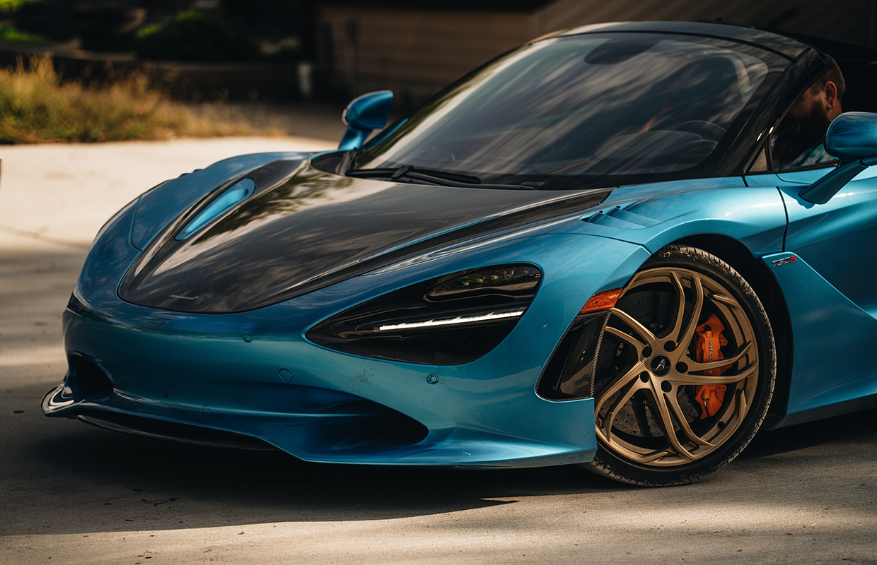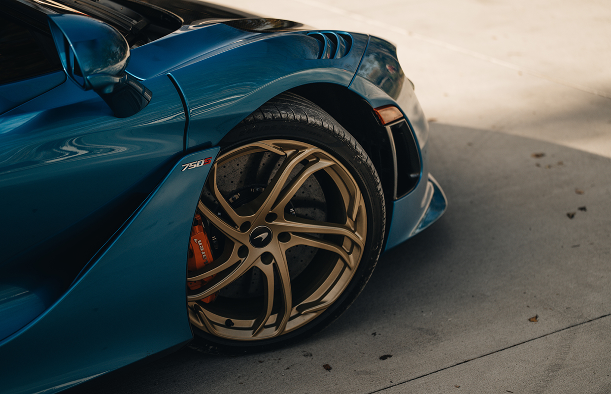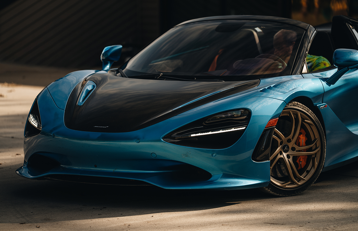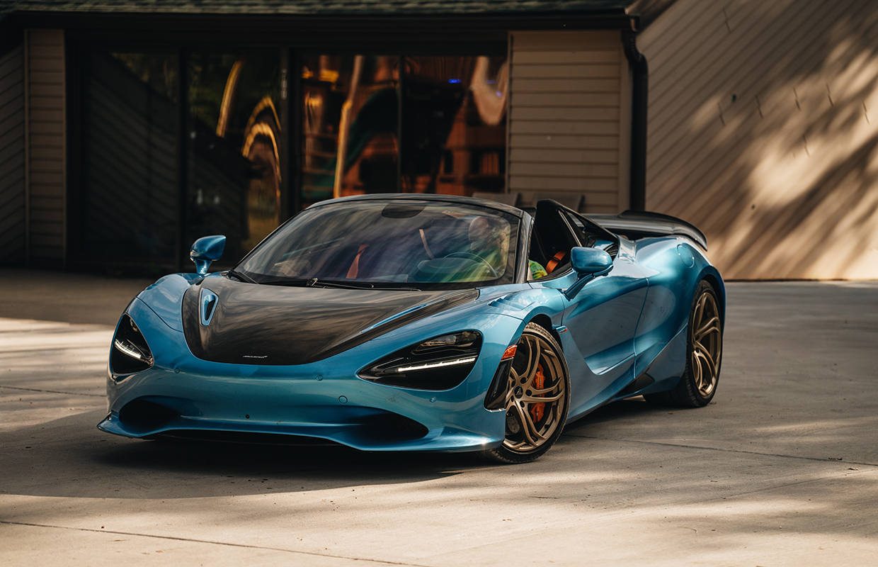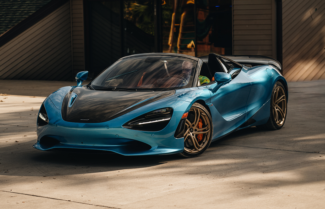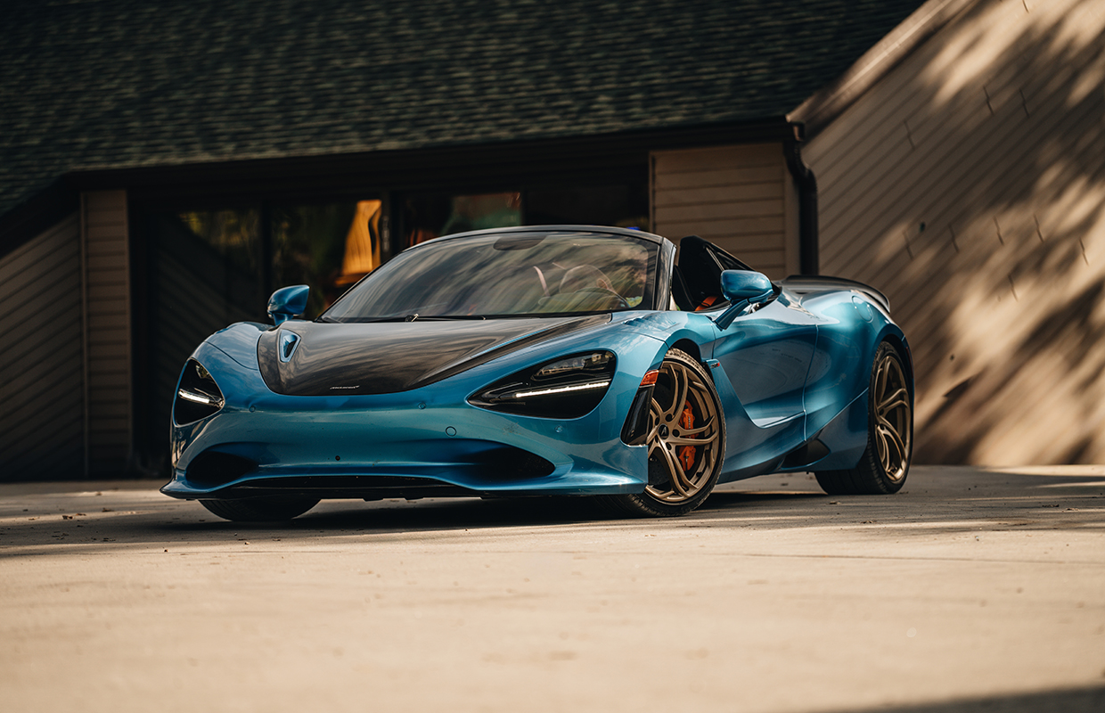 This 2024 McLaren 750S Spider is finished in the rare MSO Ludus Blue, accented by carbon fibre aero upgrades and ultra-lightweight Vortex 5 wheels in Orum finish. With 740 hp from its 4.0L twin-turbo V8, it delivers blistering performance while retaining balance and control. Inside, the Carbon Black and McLaren Orange Performance Interior features Bowers & Wilkins premium audio, titanium paddles, and carbon fibre details. A perfect blend of design mastery, racing DNA, and open-air exhilaration, this Spider is McLaren at its pinnacle.